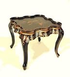 FT040 -Scallop end table. -Wood and wood veneer construction. -Hand painted. -Assembly required. -Overall dimensions : 22.5'' H x 25'' W x 25'' D.